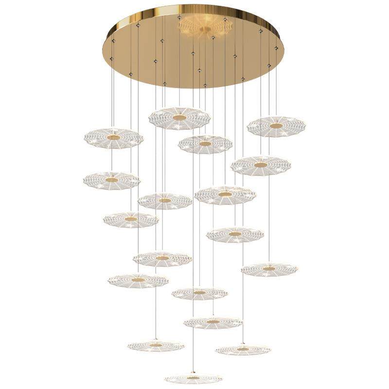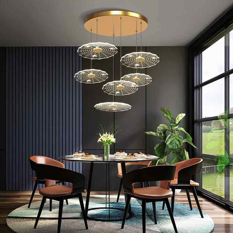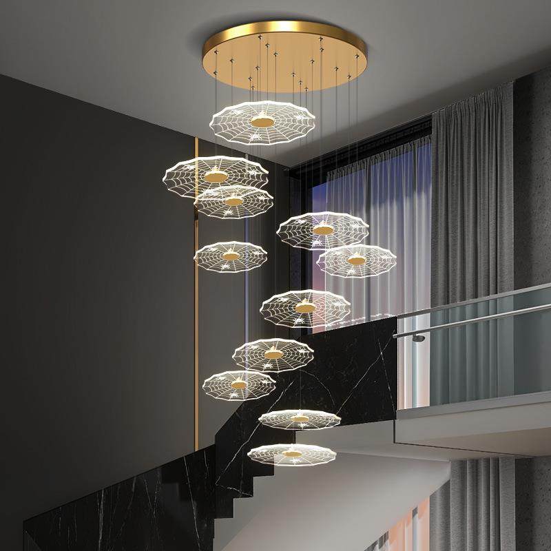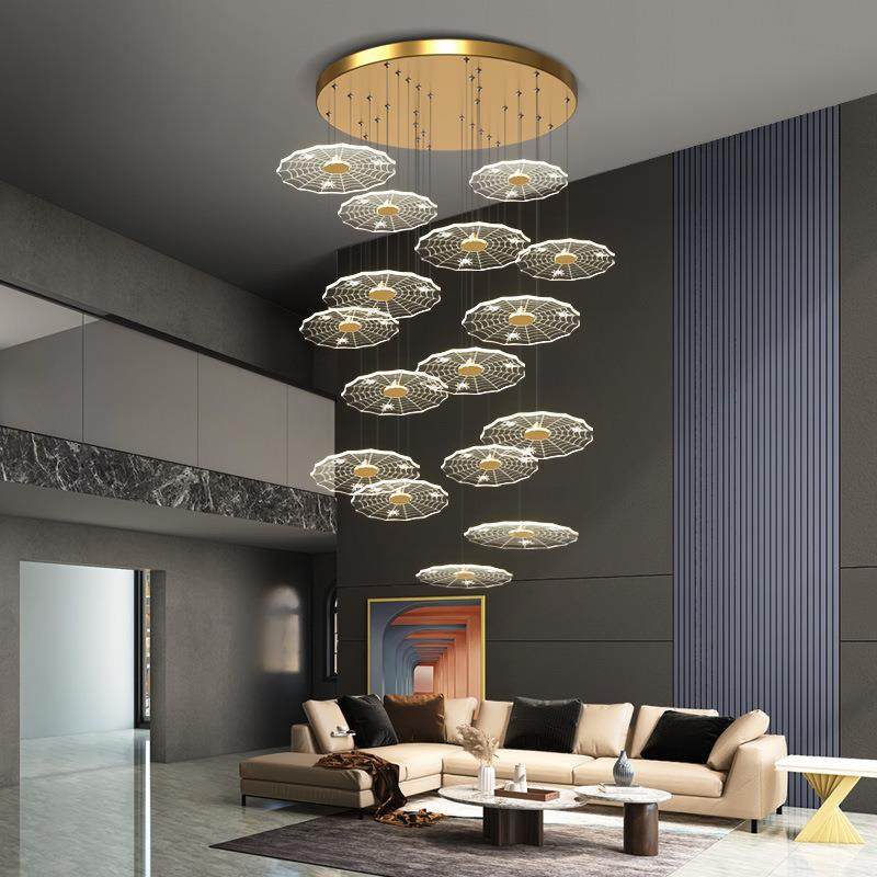 复式楼旋转楼梯吊灯艺术个性荷叶灯现代轻奢别墅大厅客厅餐厅灯具