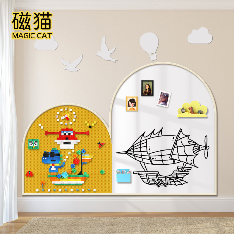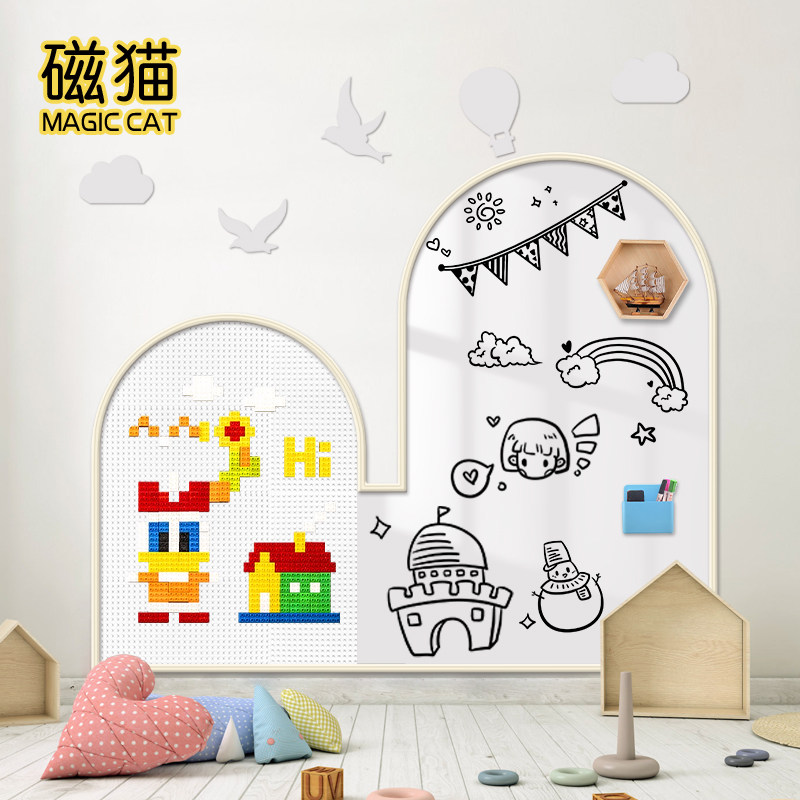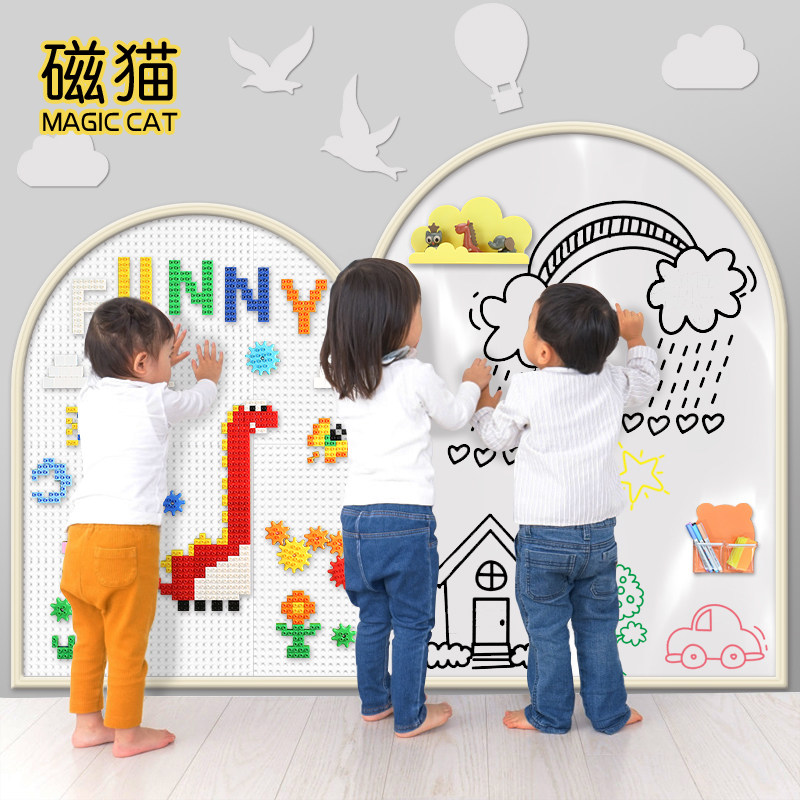 磁猫磁性白板墙积木墙二合一防撞条边框儿童宝宝双层磁性白板墙贴家用学校幼儿园水性笔可擦写白板黑板墙装饰