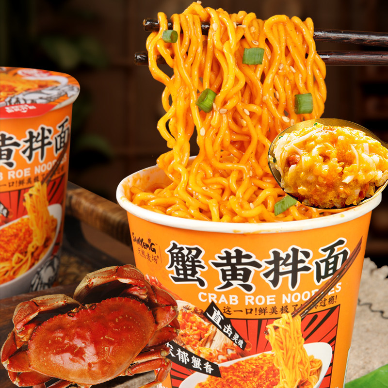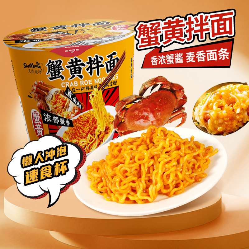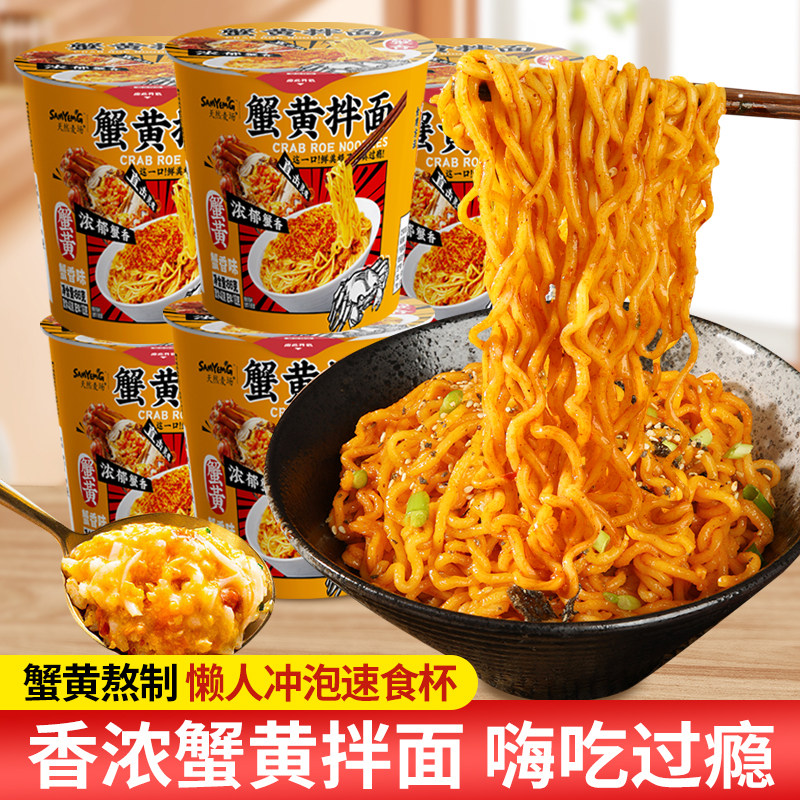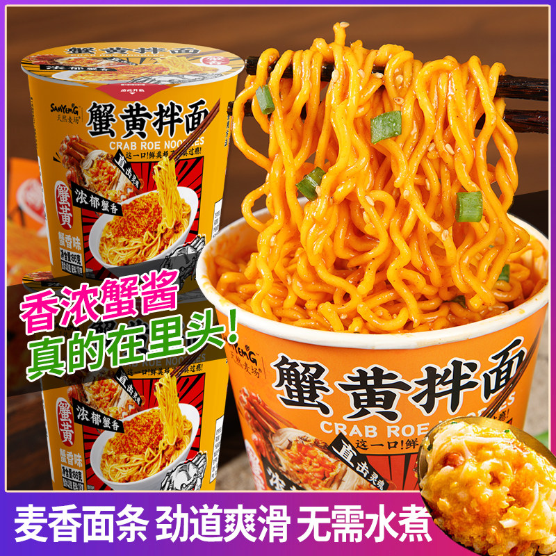 蟹黄拌面整箱批发咸蛋黄面速食方冲泡面夜宵火鸡面桶面天然麦场