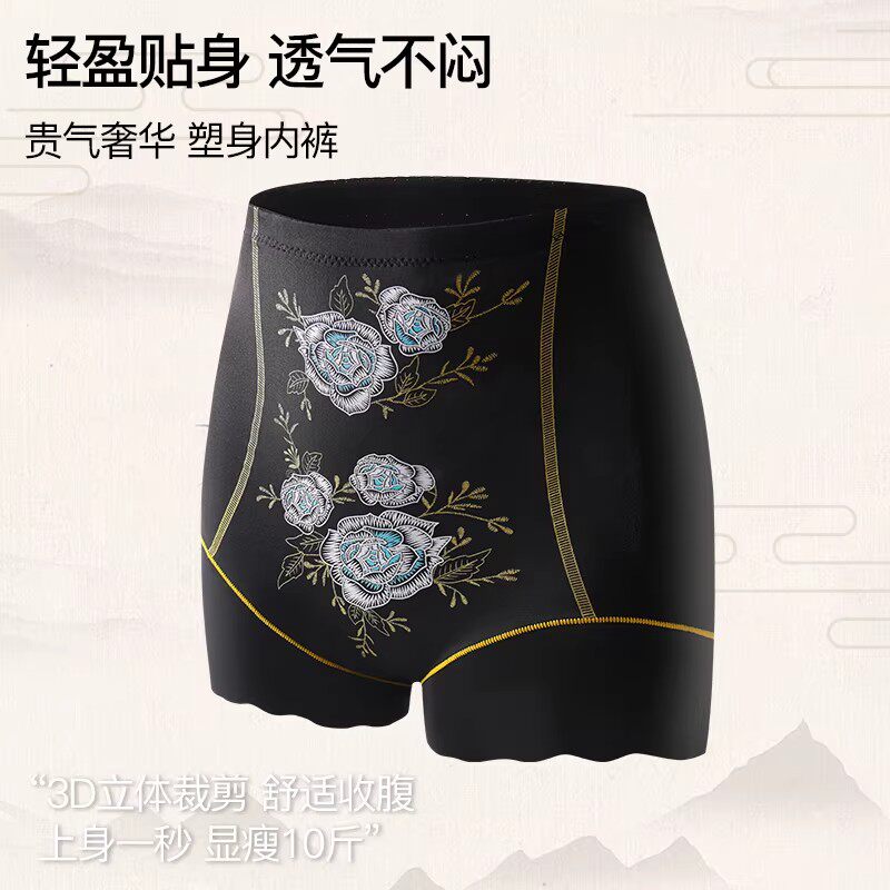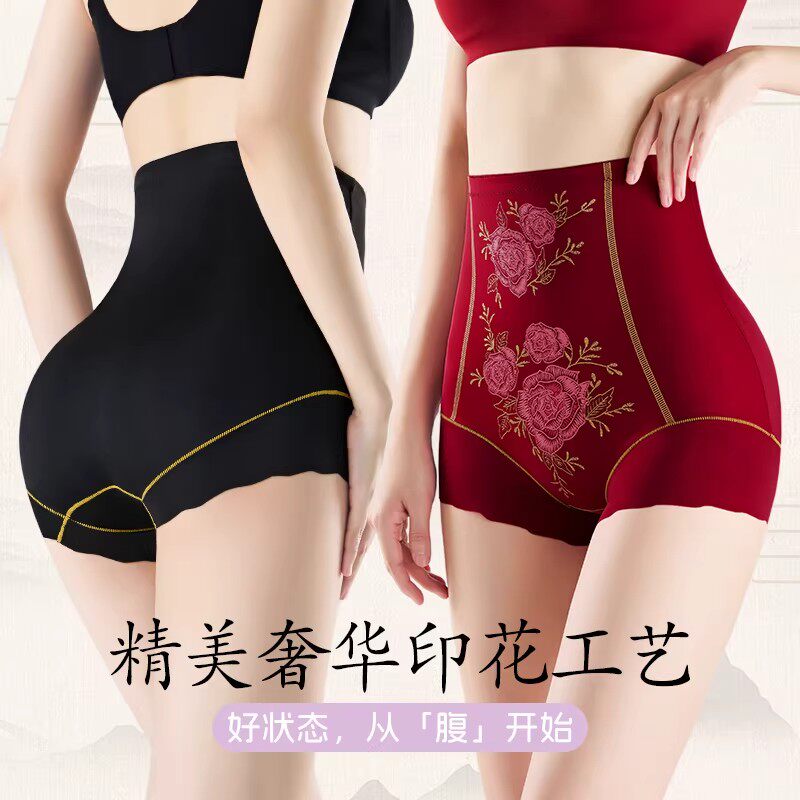 冰丝精美印花高腰收腹裤无痕透气内裤女塑形塑身美体裤舒适不卷边