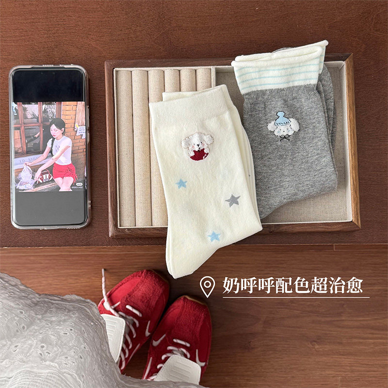 新款秋冬季袜子女中筒袜可爱立体女袜植绒美腿袜情侣款条纹卡通