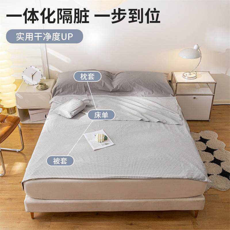 新款纯棉酒店隔脏睡袋床单被套旅行便携式外出差四件套一体旅睡宝