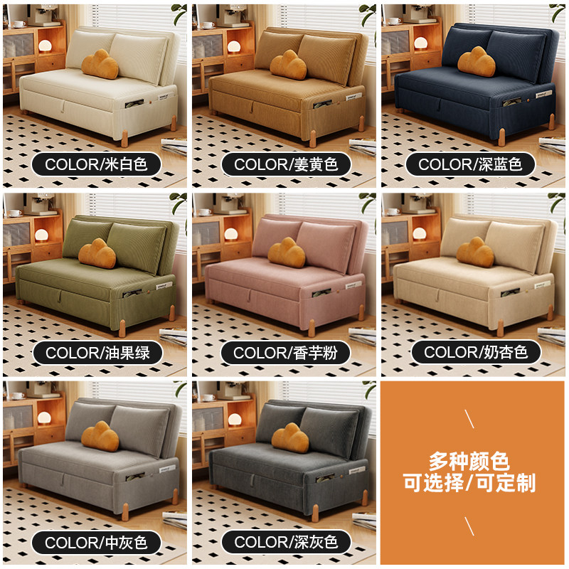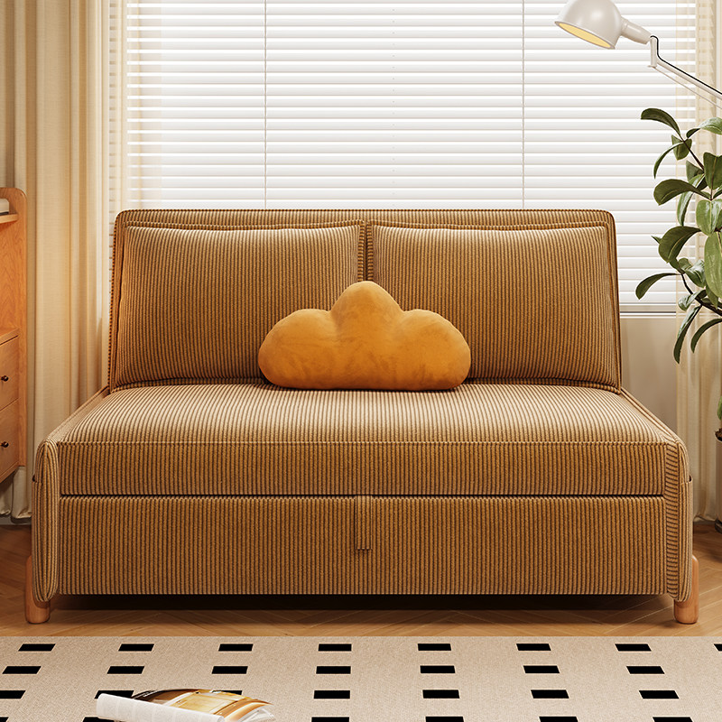 司朴复古风小户型客厅沙发床可推拉伸缩两用灯芯绒布书房单人沙发