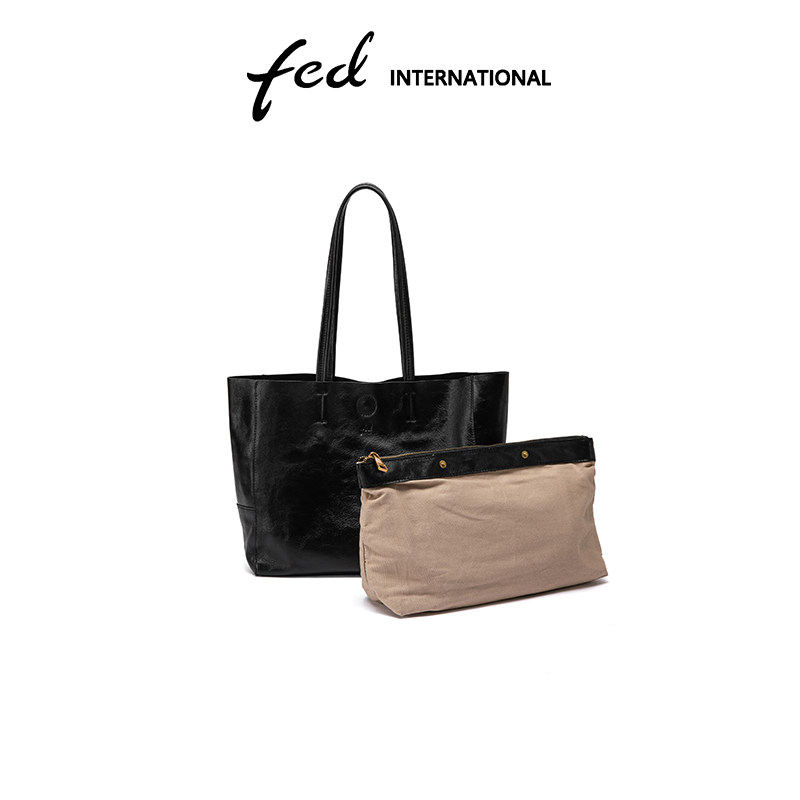 fed头层牛皮真皮女包大容量托特包单肩斜挎女包妈咪旅行BFA9461