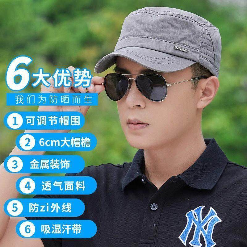帽子男士平顶爸爸休闲防晒短檐布帽太阳帽四季春秋鸭舌帽大帽檐