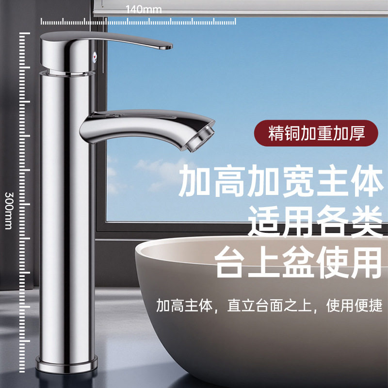 加高台盆水龙头冷热水高脚洗脸盆面盆加长洗手盆龙头台面台上盆
