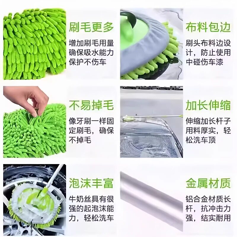 徕本弯杆洗车拖把不伤车漆软毛伸缩车用汽车刷子专用除尘掸子神器