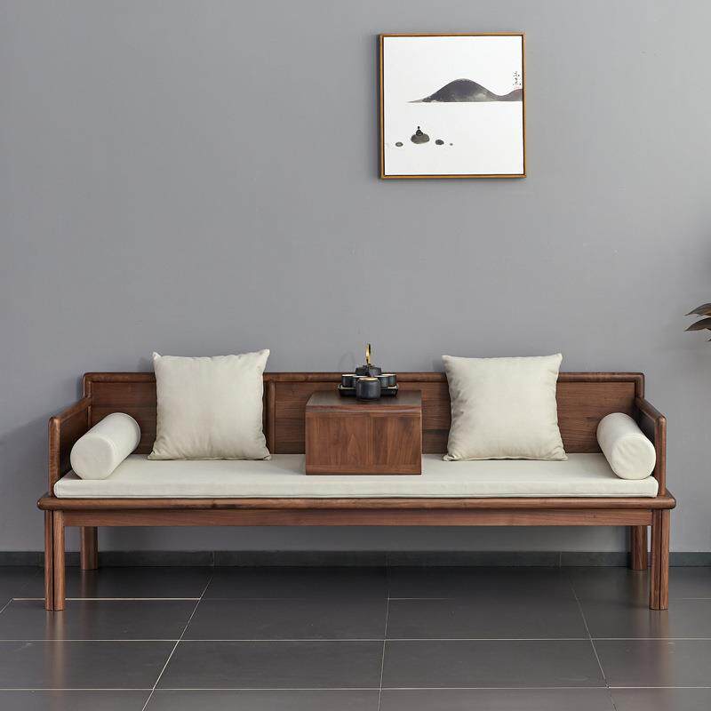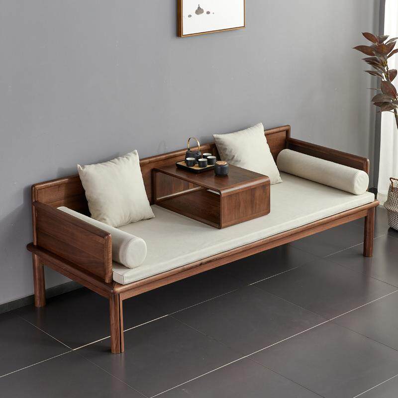 北美黑胡桃木推拉沙发新中式罗汉床简约日式客厅全实木伸缩沙发床