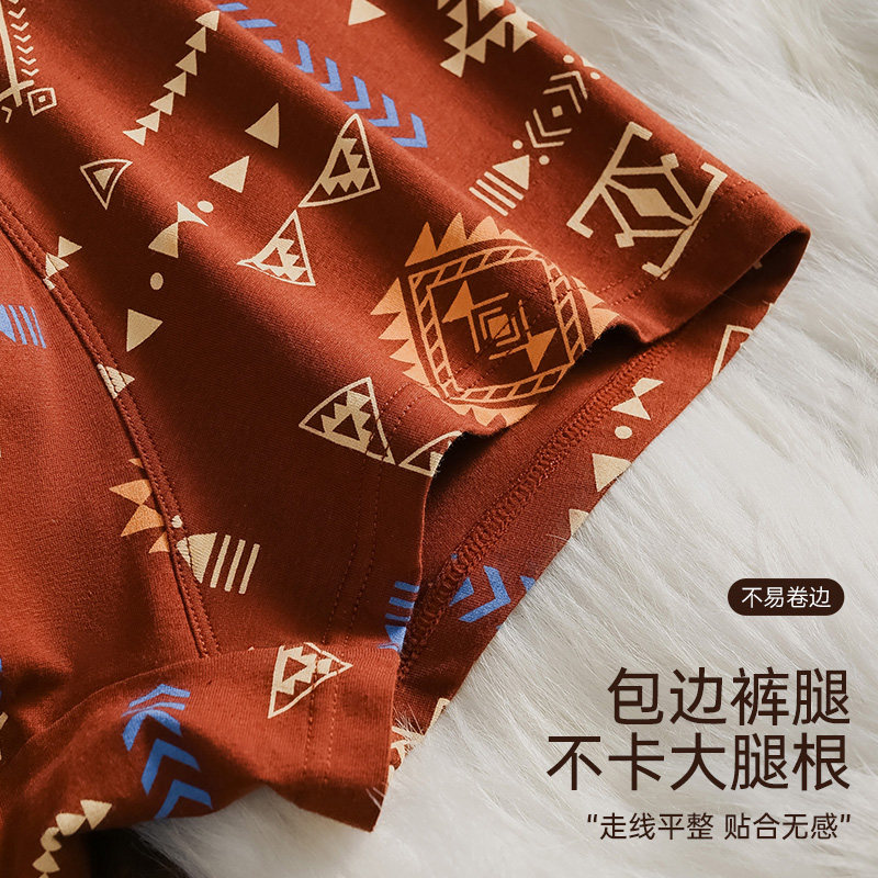 男士内裤男纯棉透气四角裤2025新款潮流复古民族风平角裤男生短裤