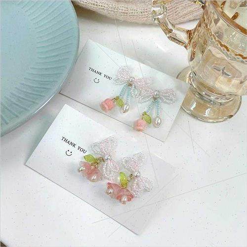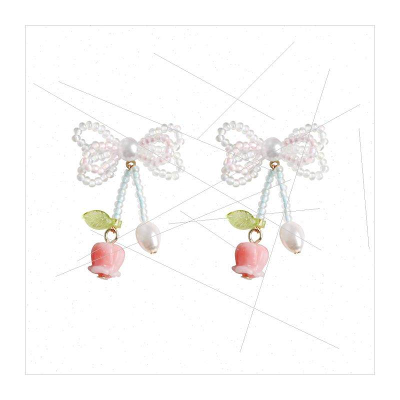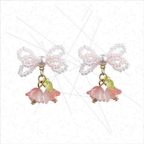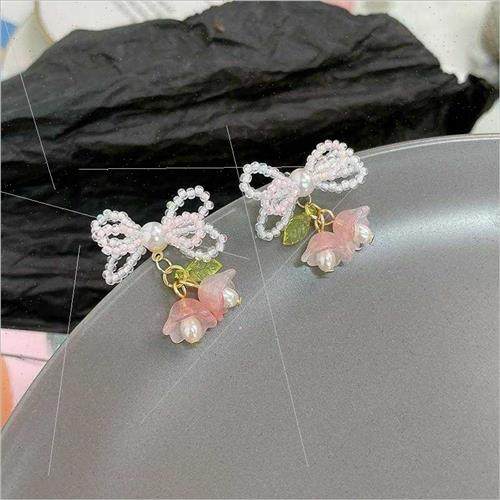 Fresh bow pearl beaded fashion cute bell orchid flower earri