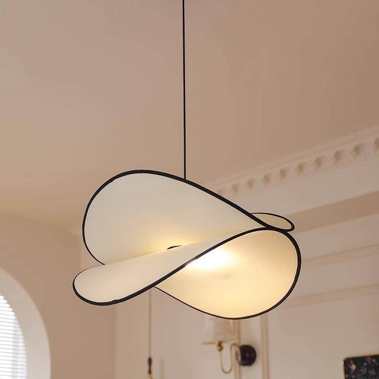 无上良品奶油风布艺吊灯卧室书房法式中古餐厅民宿薯片草帽南洋灯