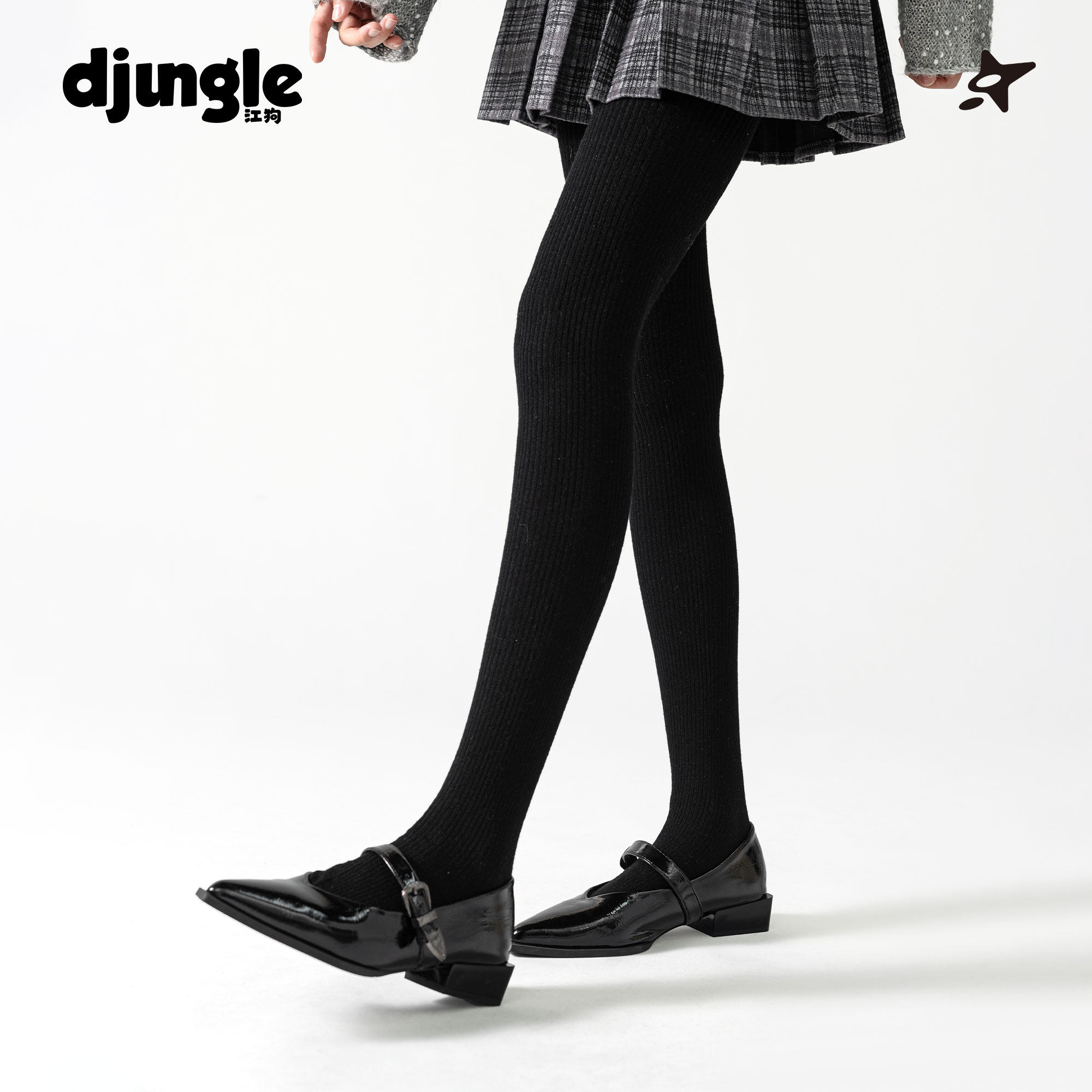 菇娘家热压连裤袜高支棉羊毛打底裤女灰色大码秋冬黑色保暖瘦腿袜