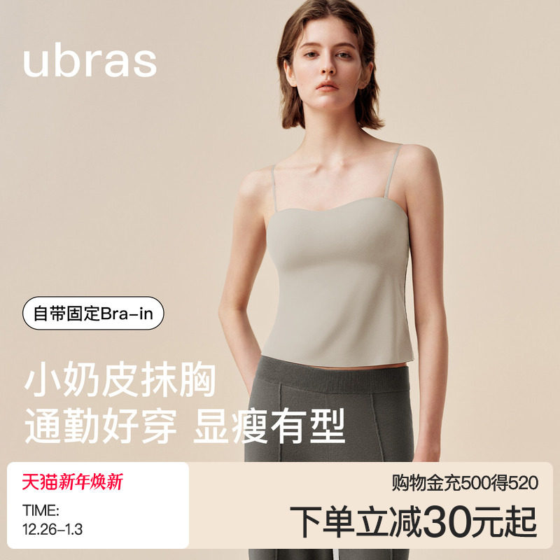ubras白色抹胸带胸垫文胸奶皮吊带背心挂脖无袖上衣女长内衣t恤