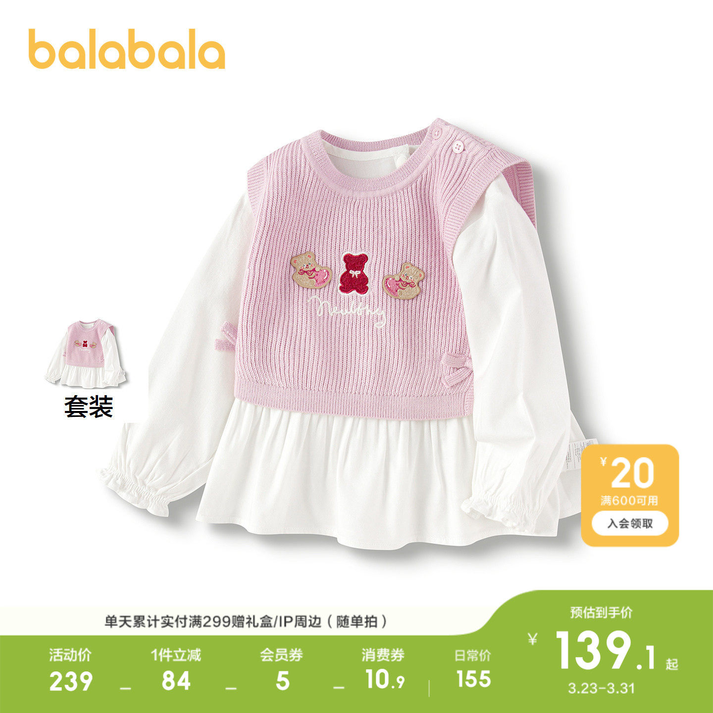 巴拉巴拉童装宝宝衬衫套装女童背心两件套2026休闲春装甜时尚潮酷