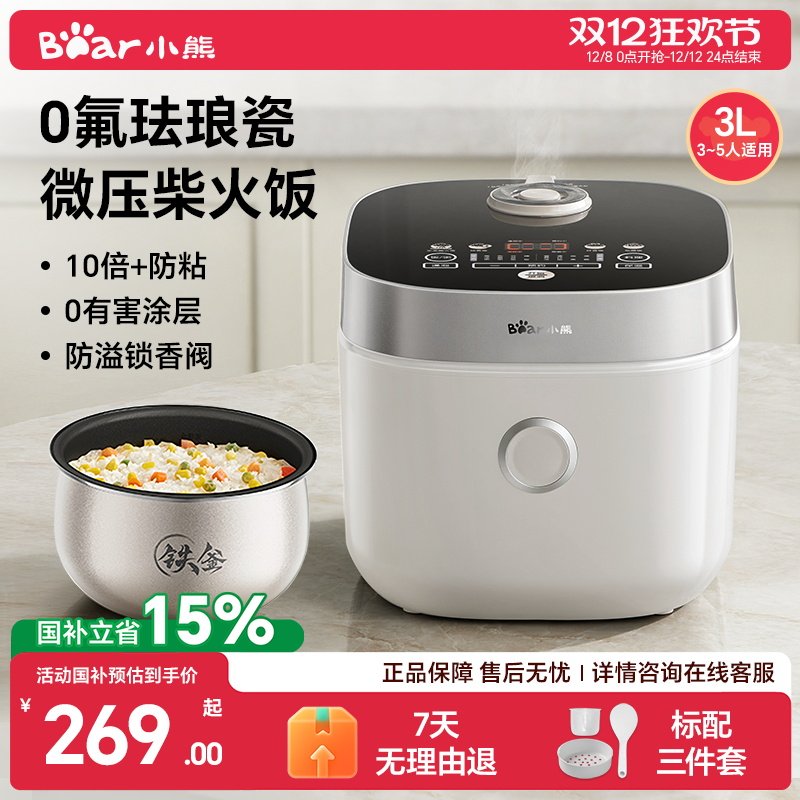政府补贴小熊电饭煲珐琅涂层内胆家用小型智能电饭锅2-3-4人