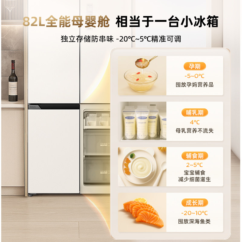 美的华凌神机547双系统超薄零嵌入式十字双开四门家用一级冰箱