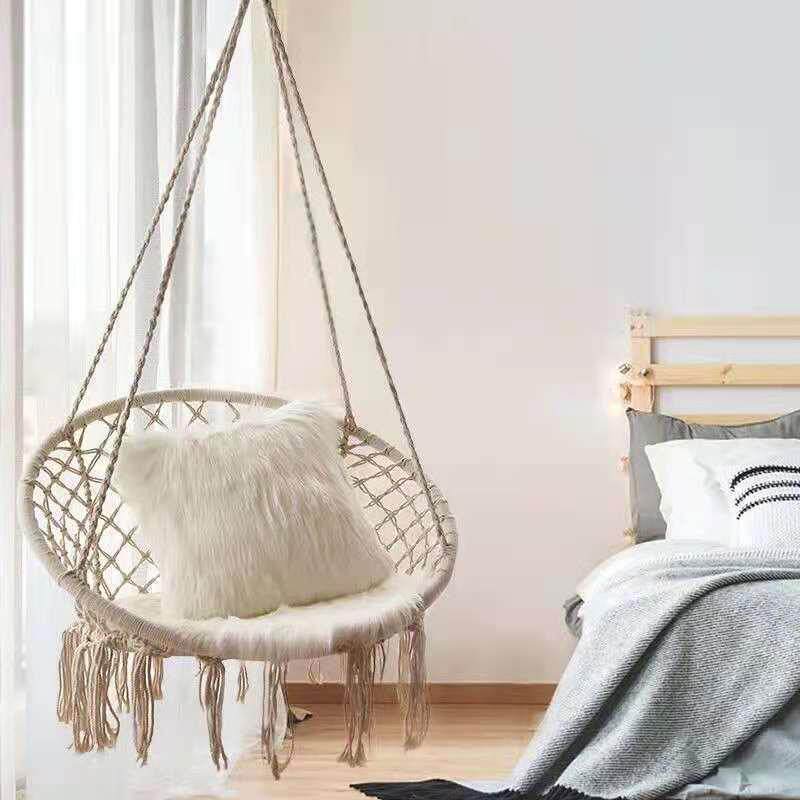 影楼北欧风摄影道具吊床室内写真拍照棉绳编织吊篮流苏秋千吊椅