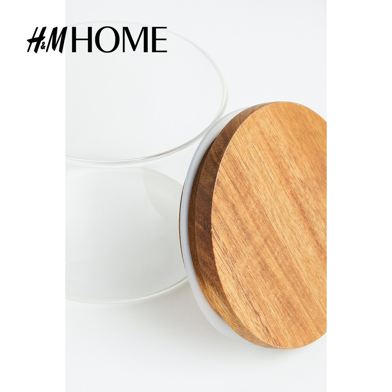 HM HOME餐饮具储物罐透明玻璃家用收纳配紧固木盖玻璃瓶1136273