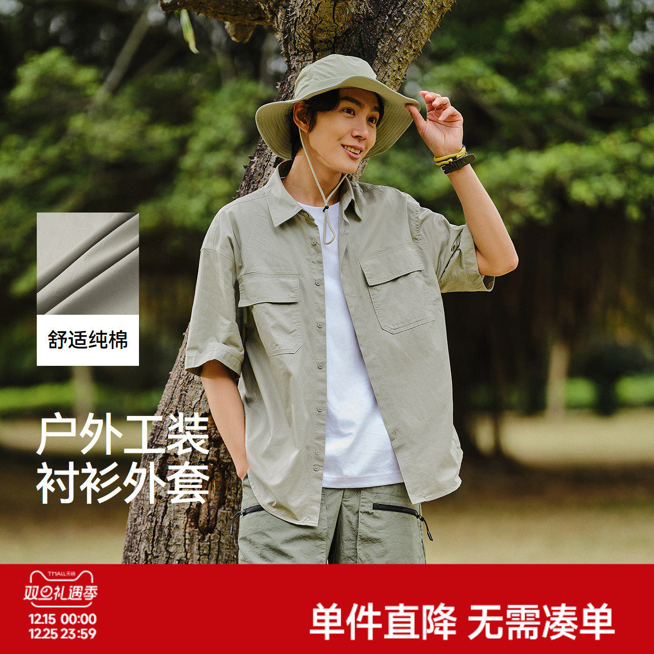 森马短袖衬衫男2025秋款纯棉宽松衬衣外套户外工装做旧水洗上衣