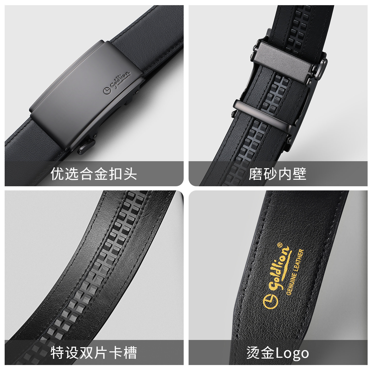 金利来皮带男士新款自动扣内穿式牛皮防指纹黑色头层牛皮腰带裤带