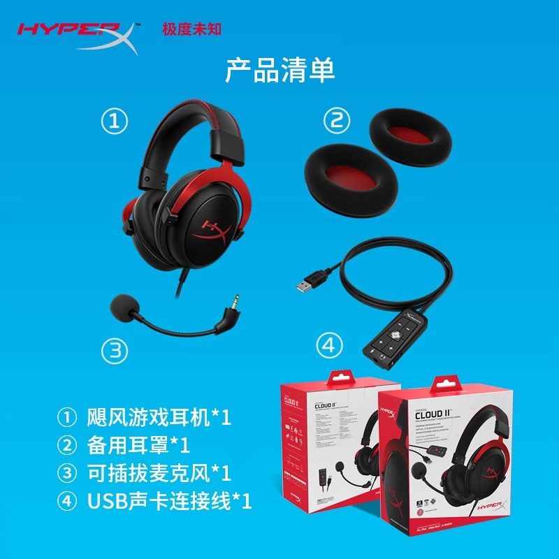 【官方旗舰】极度未知HyperX飓风2/3头戴式耳机电竞游戏