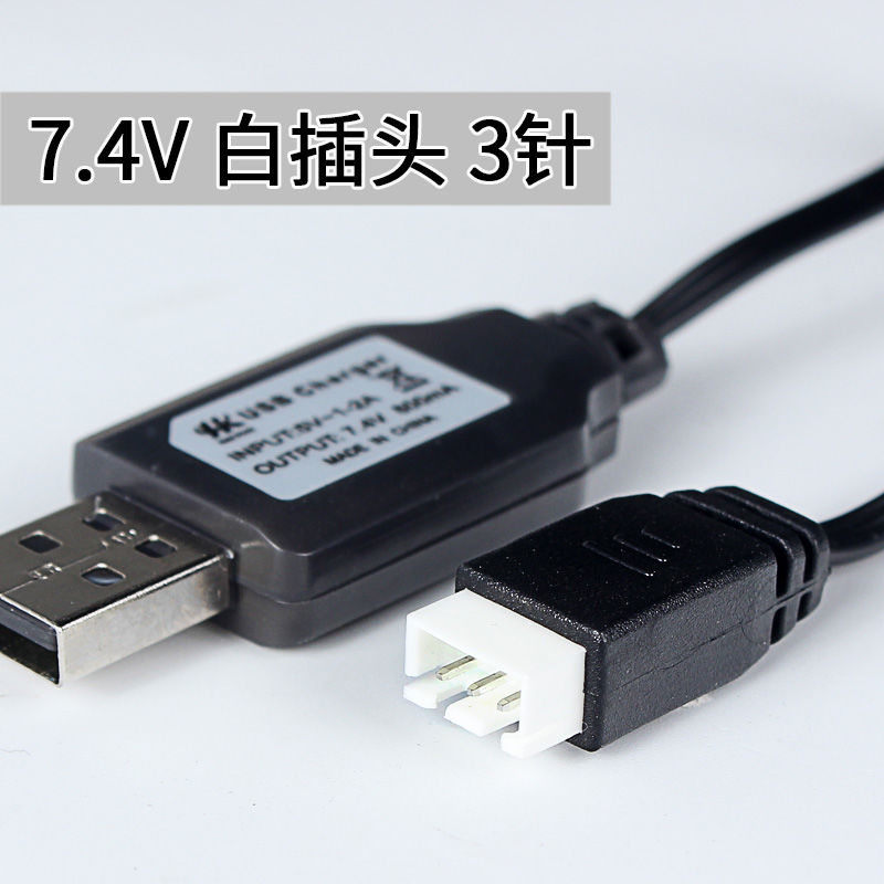 7.4V锂电池USB充电线玩具电池充电器3线 4线插头遥控车玩具枪配件
