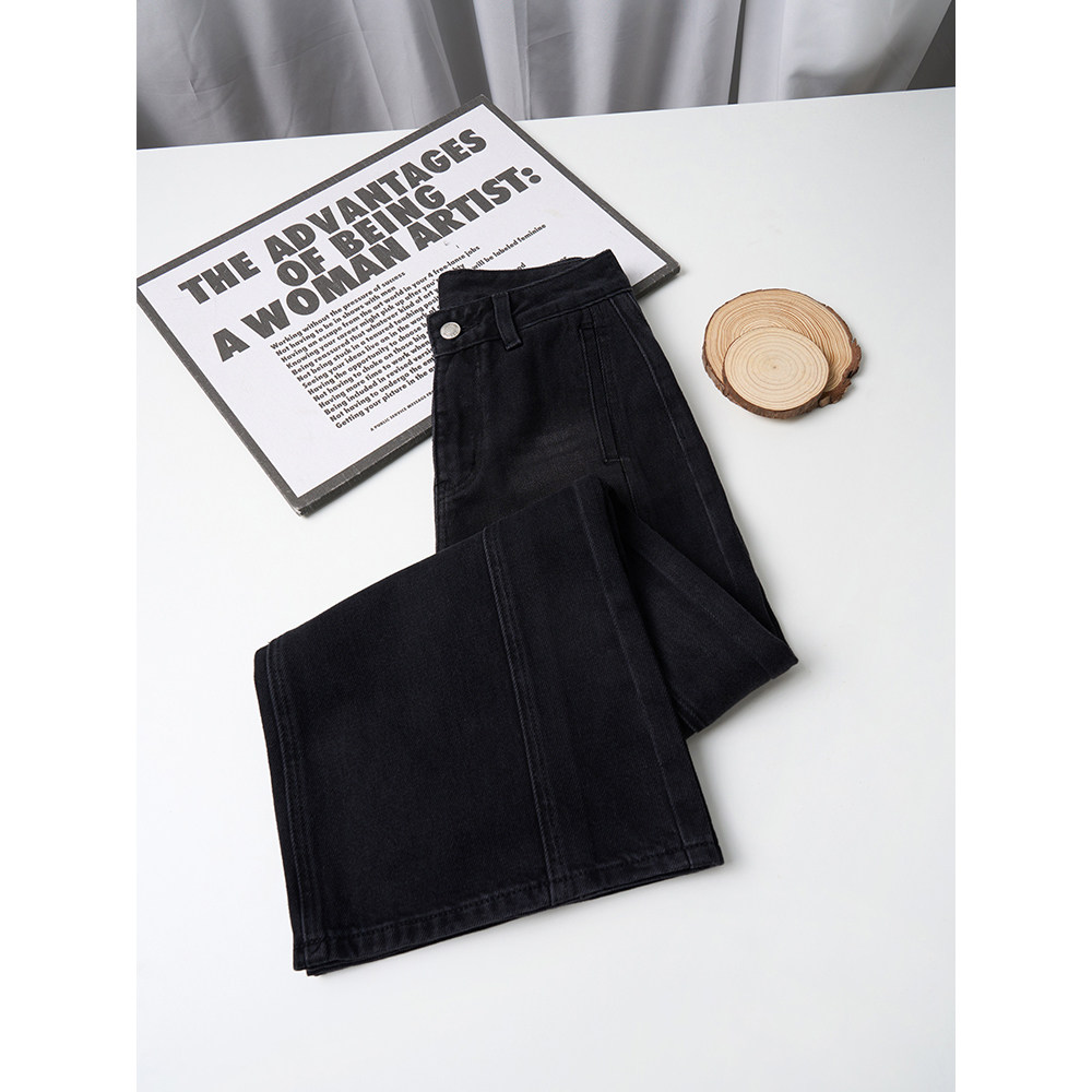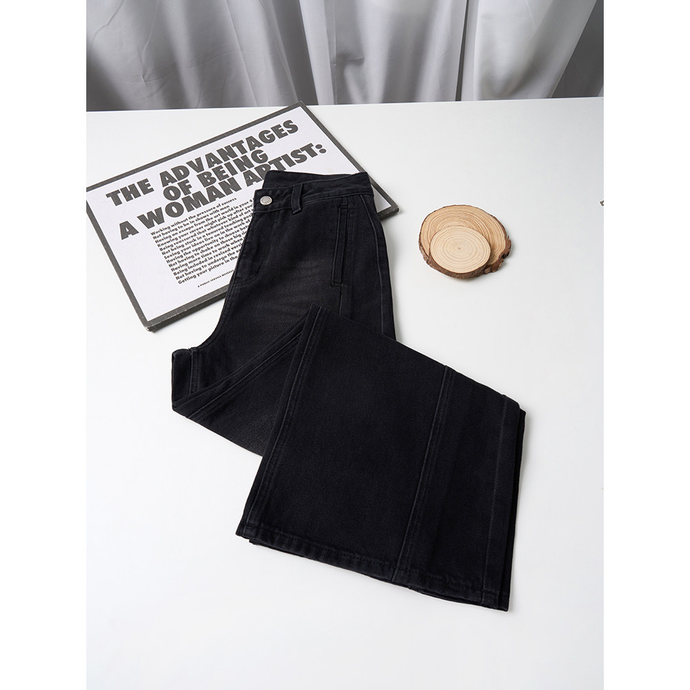 王家有鱼【小个子定制】新款黑灰阔腿裤女2025爆款牛仔裤时尚裤子