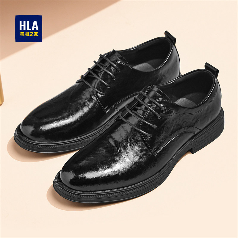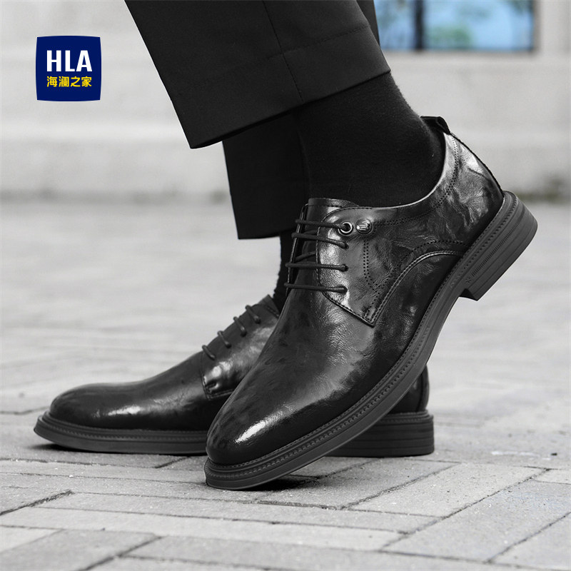 HLA/海澜之家男鞋新款春秋流行尖头商务正装皮鞋纯色光面德比鞋