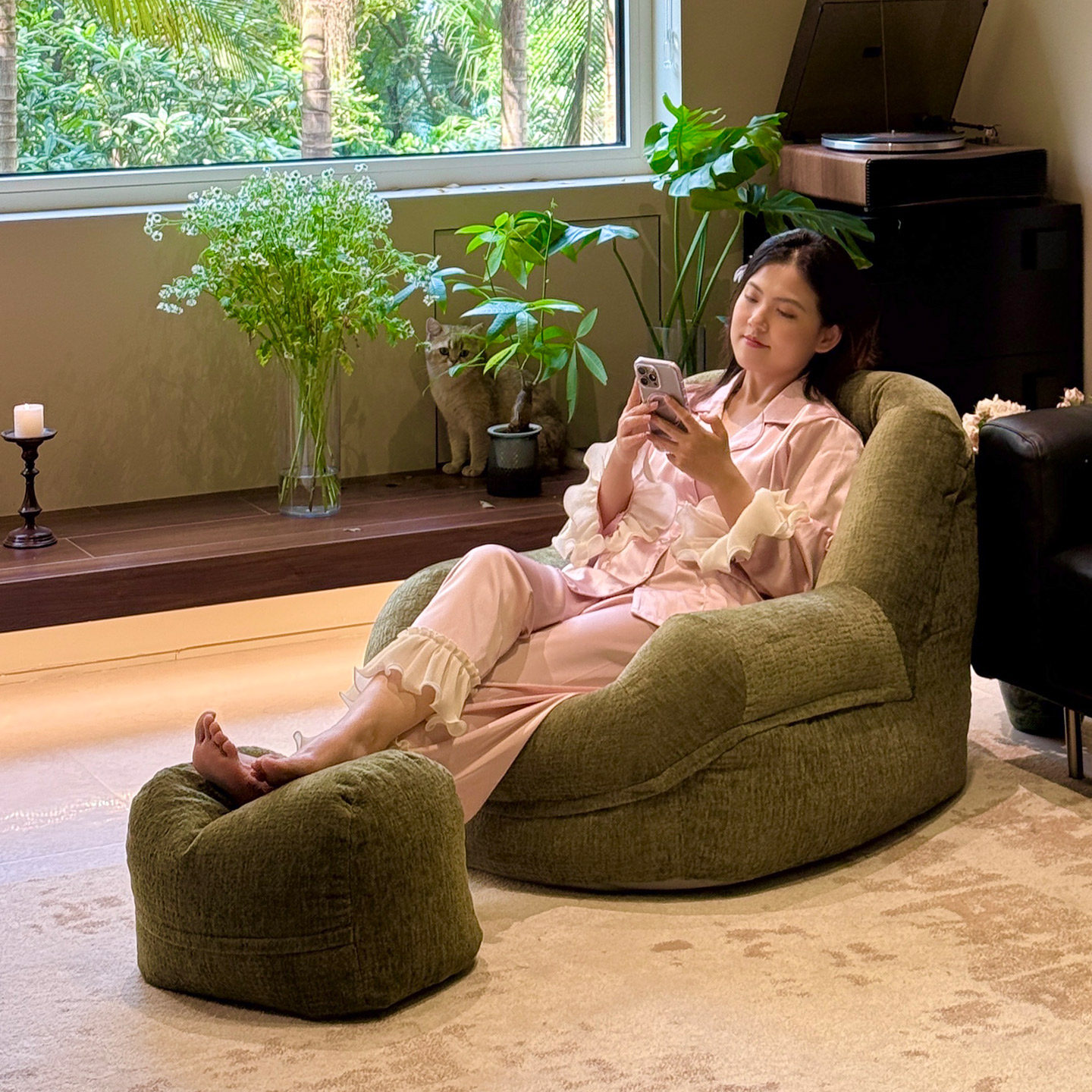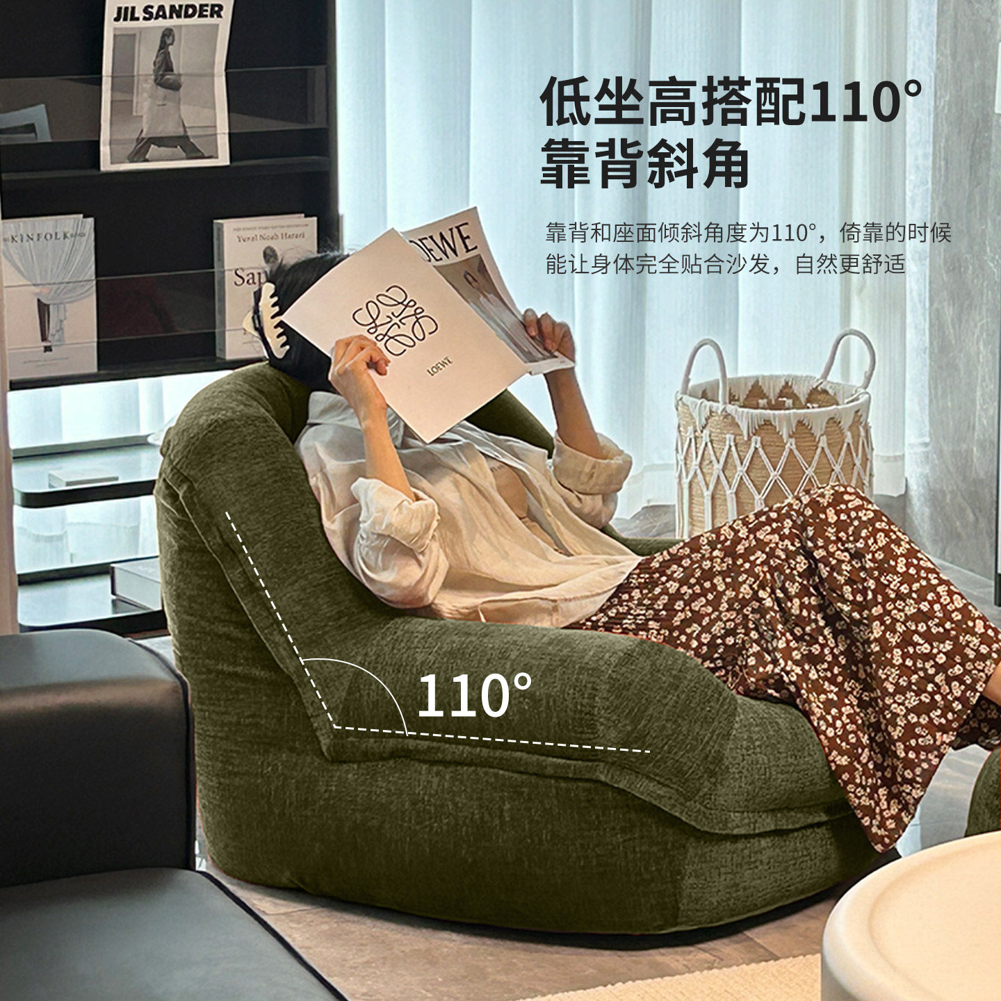 懒人沙发休闲椅阳台折叠靠背椅飘窗坐垫床上榻榻米侘寂椅子小沙发