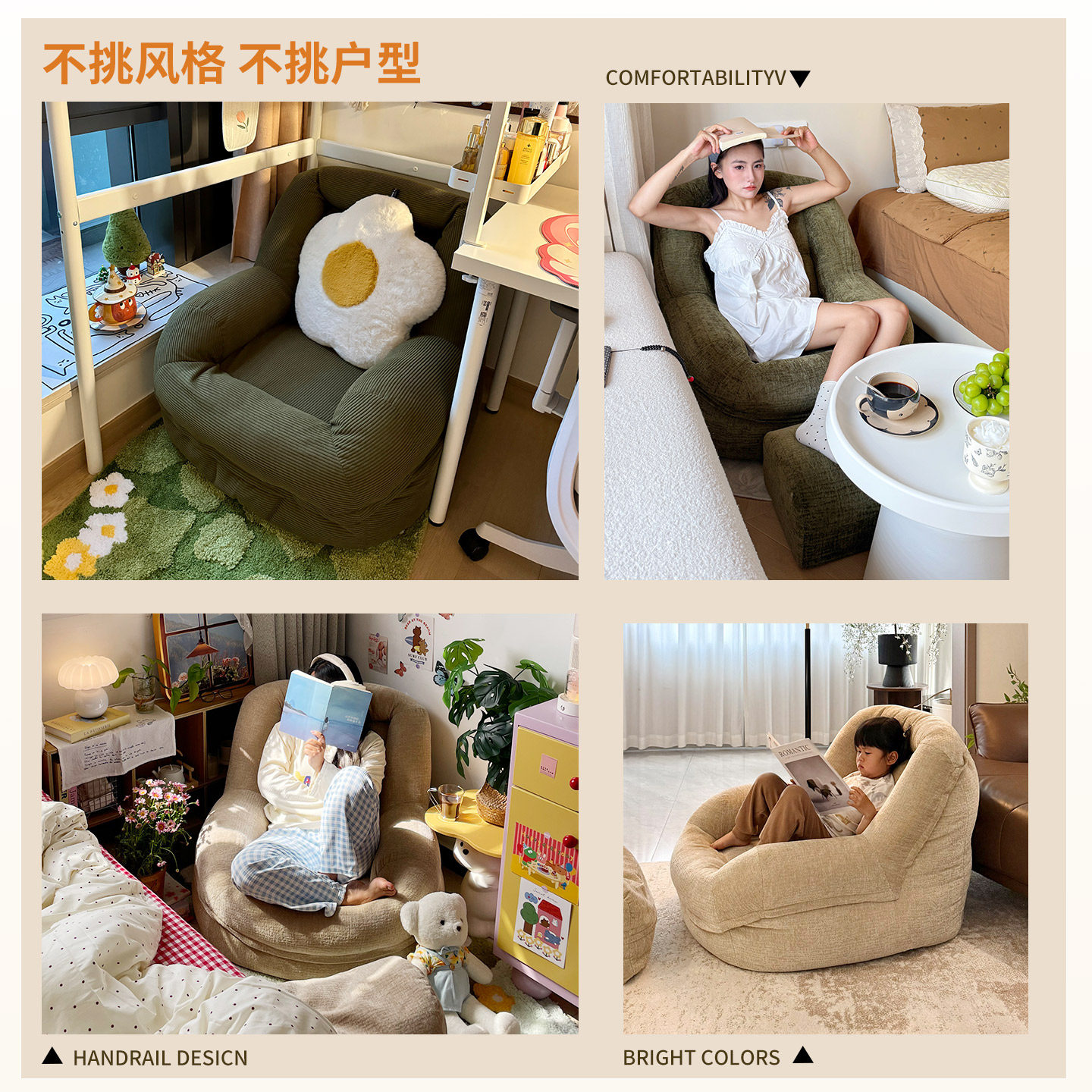 懒人沙发儿童房阅读角看书小沙发椅卧室休闲单人靠背椅子窝窝沙发