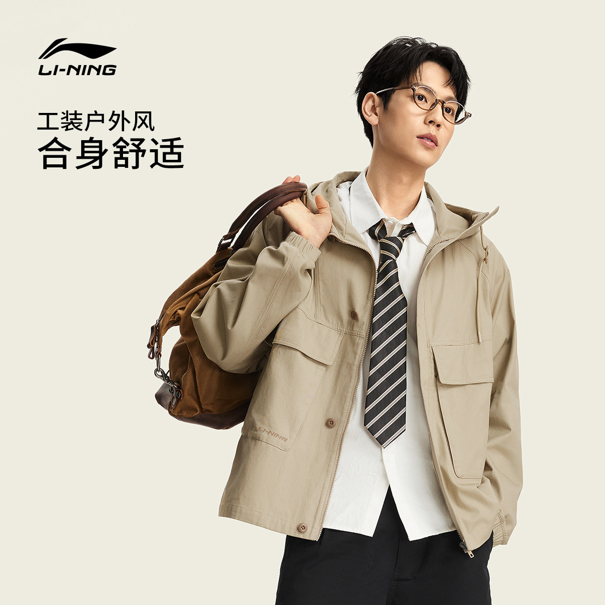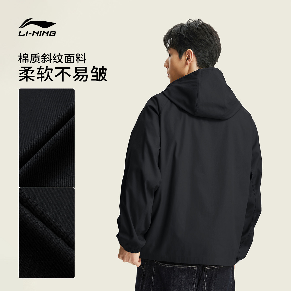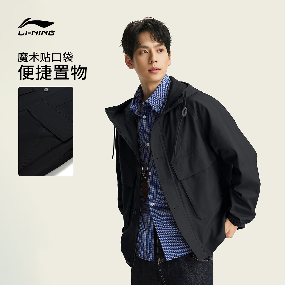 李宁外套男2026春季新品开衫派克夹克宽松连帽工装休闲梭织运动服