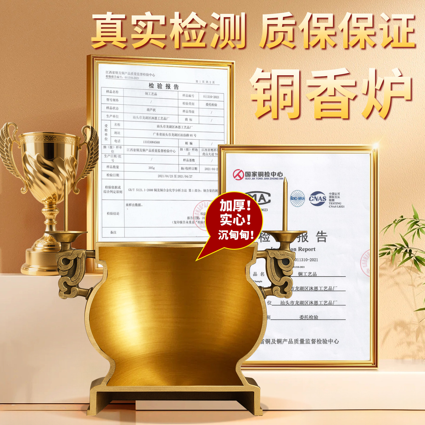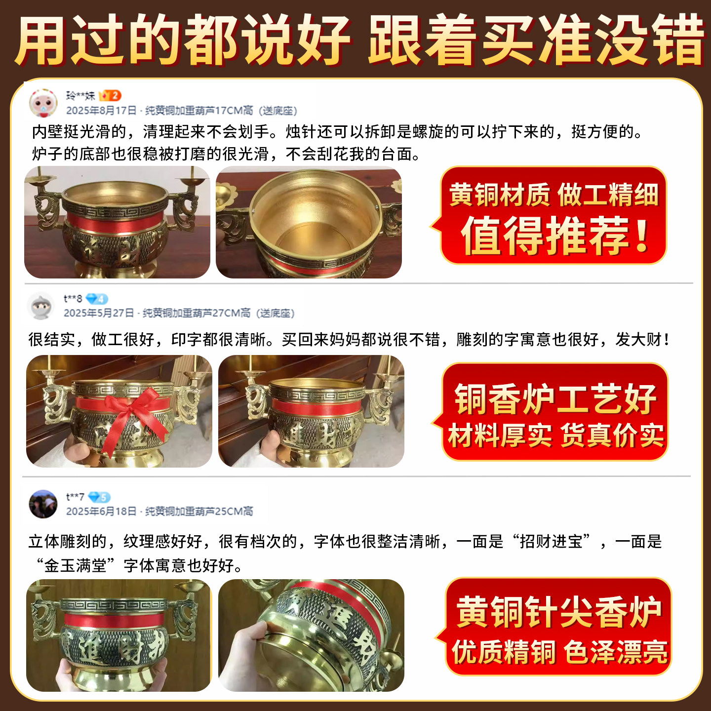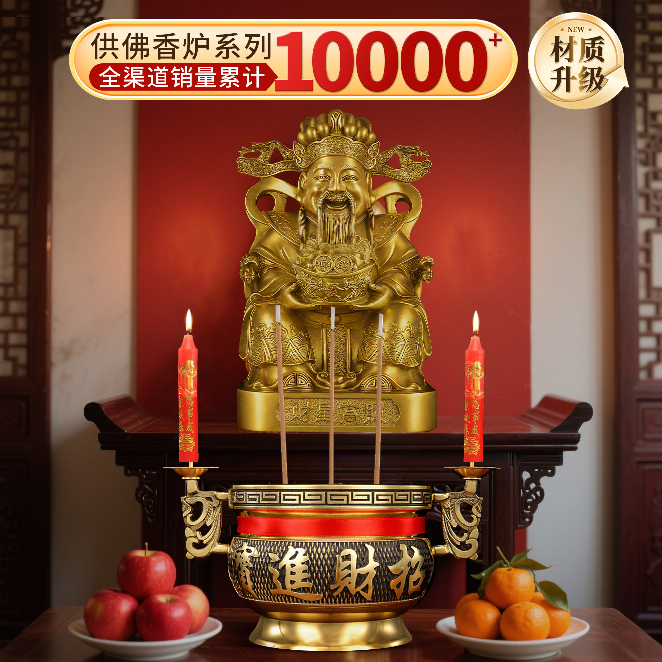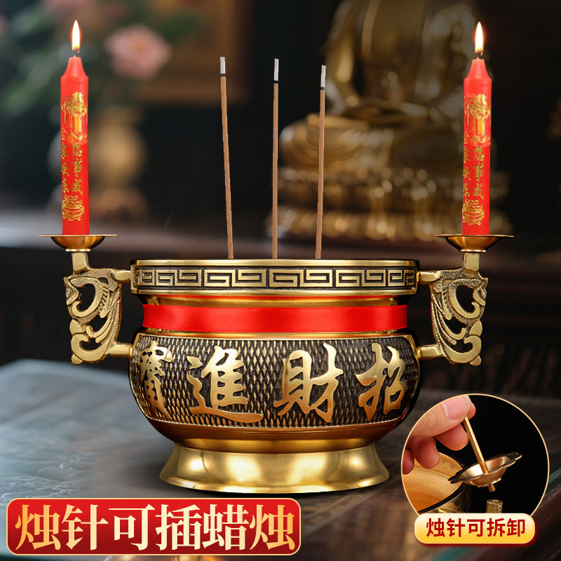 纯铜香炉家用蜡烛台座小号大号连体上香财神上供奉佛全黄铜香熏炉