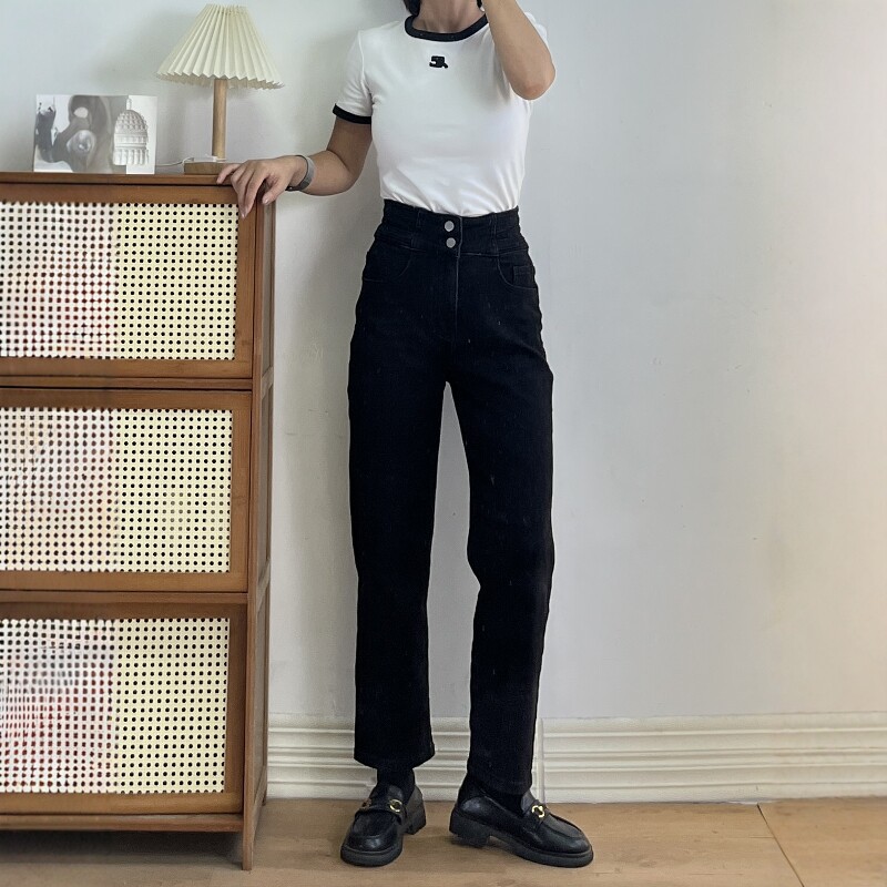 王家有鱼秋冬新款加绒阔腿裤2025百搭修身显瘦宽松直筒牛仔裤子女