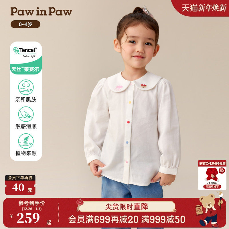 【天丝】PawinPaw卡通小熊童装25年秋季新款女宝宝长袖衬衫可爱