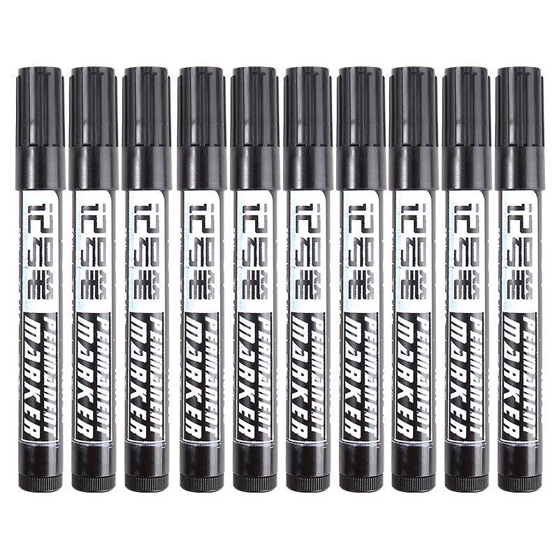 12色大双头彩色油性笔记号笔光盘笔儿童勾线笔绘画笔黑色彩色10支