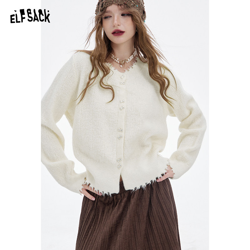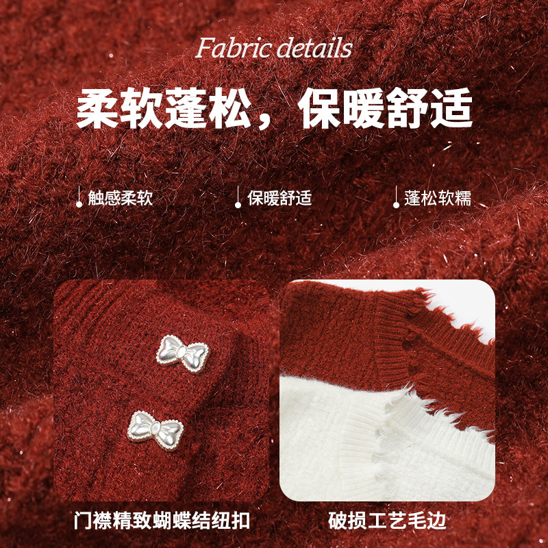 妖精的口袋蝴蝶结红色亮丝甜美毛衣女2025年冬季新款慵懒新年穿搭