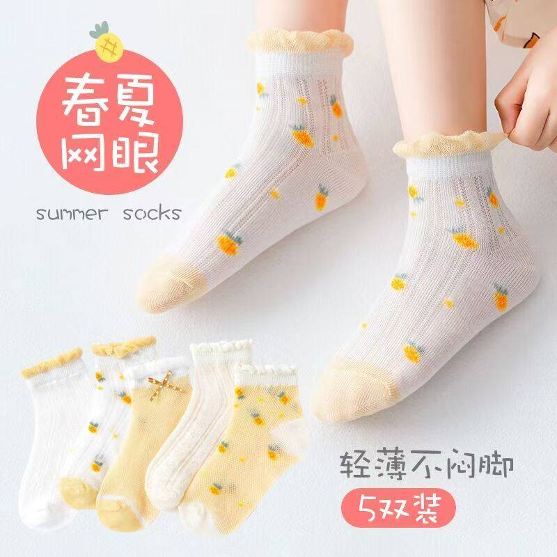 春夏季女童袜子网眼夏季薄款透气春夏女孩宝宝卡通学生韩系短袜