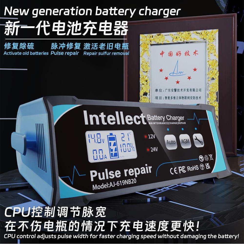 跨境10A亚马逊蓄电池智能脉冲修复充电机12v伏汽车电瓶充电器