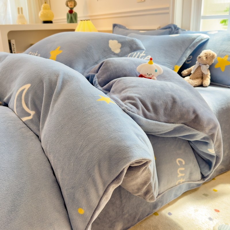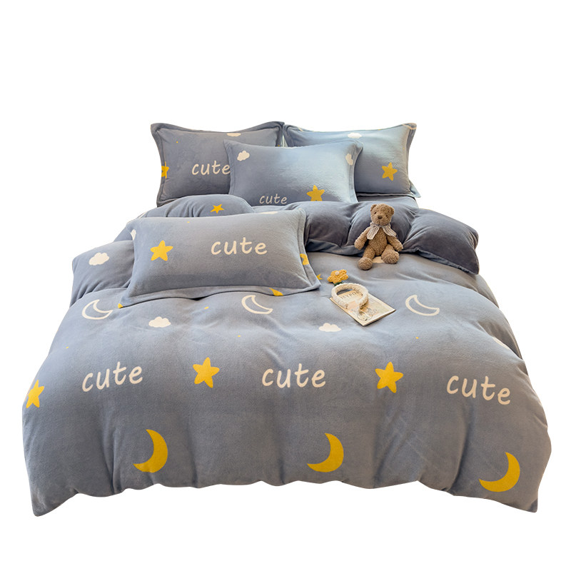 冬季加绒被套单件牛奶绒珊瑚绒宿舍单人单独毛绒被罩1.5米四件套3