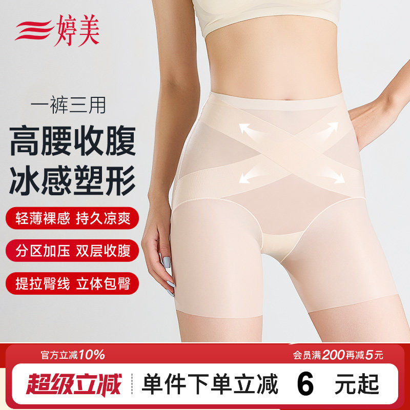 婷美2025新款高腰无痕交叉收腹裤强力收小肚子提臀美体塑形内裤