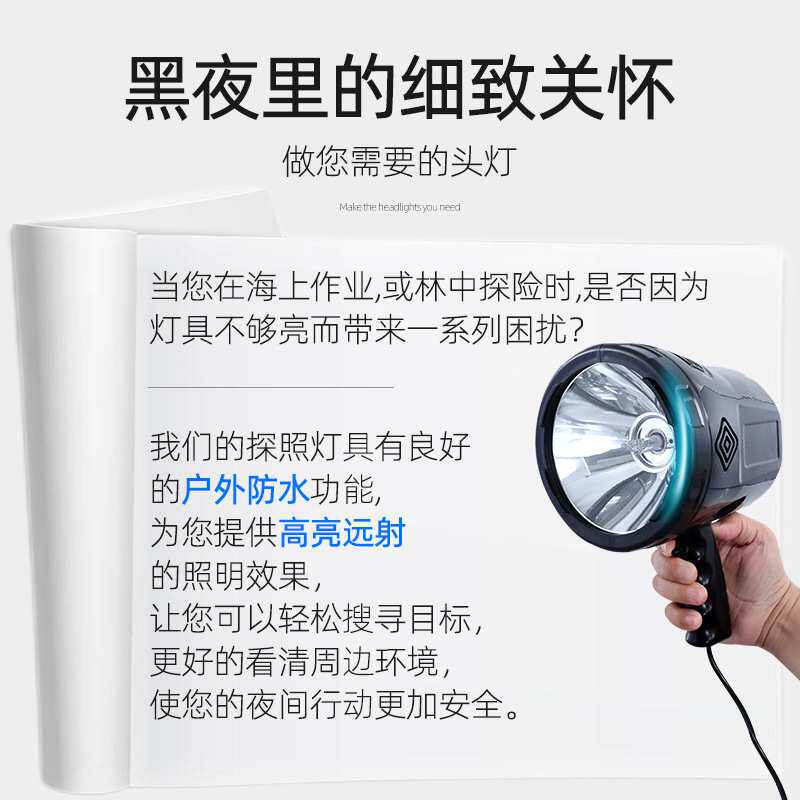 船用12v/24v超亮聚光远射手电筒强光照明100w手持氙气探照灯213黑