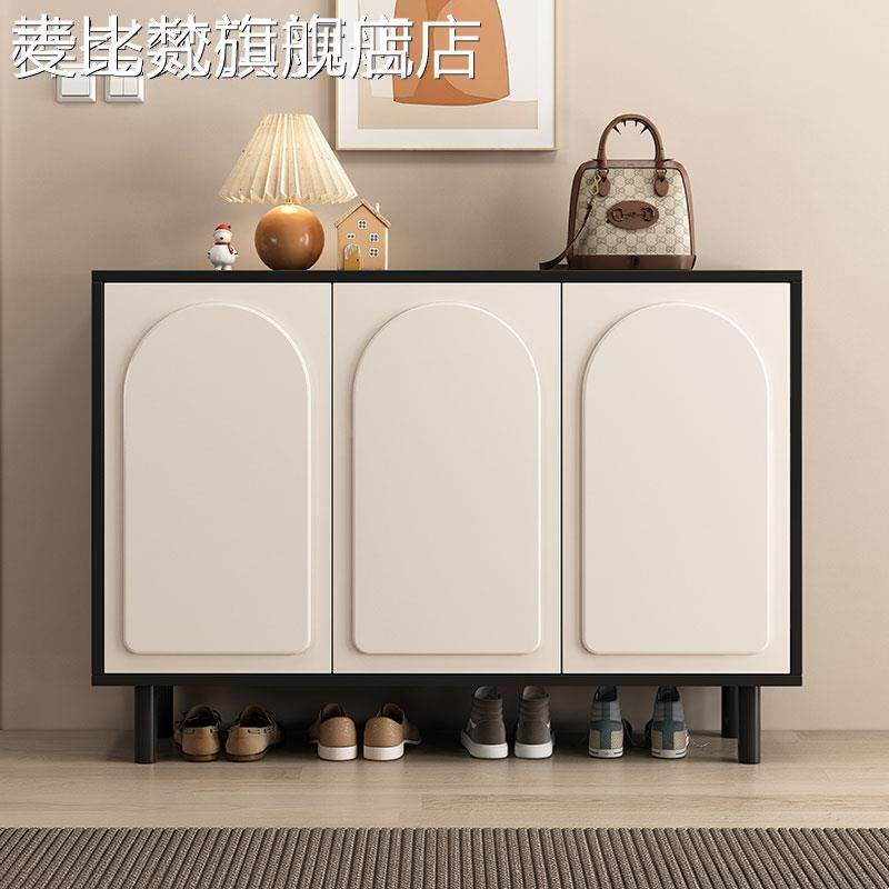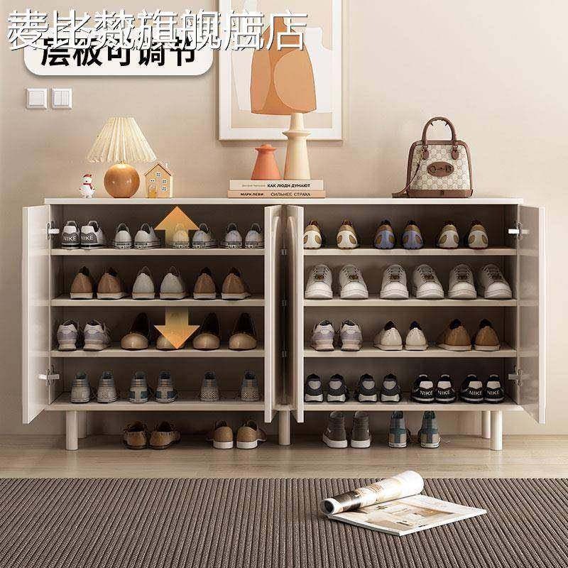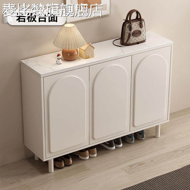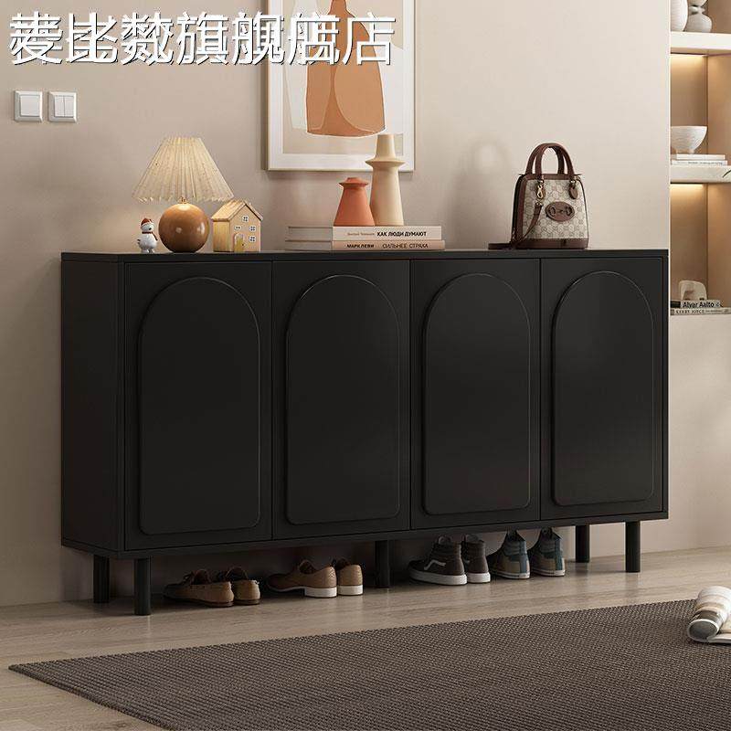 麦比梵鞋柜家用门口多层鞋架储物柜一体玄关柜轻奢复古风黑色岩板鞋柜子床笠拉车