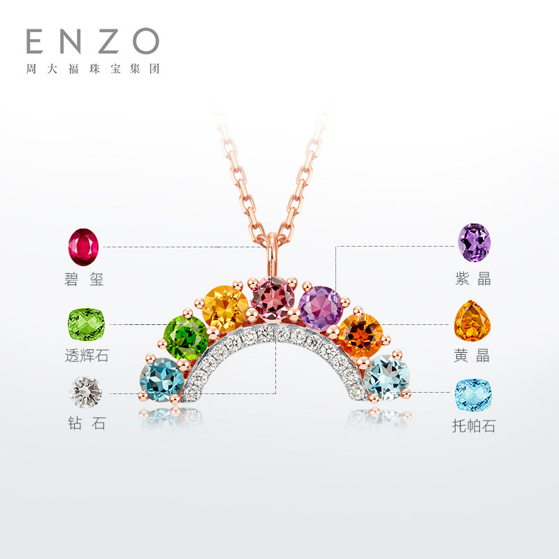 ENZO 18K金多彩宝石钻石项链女EZV8012新春礼物
