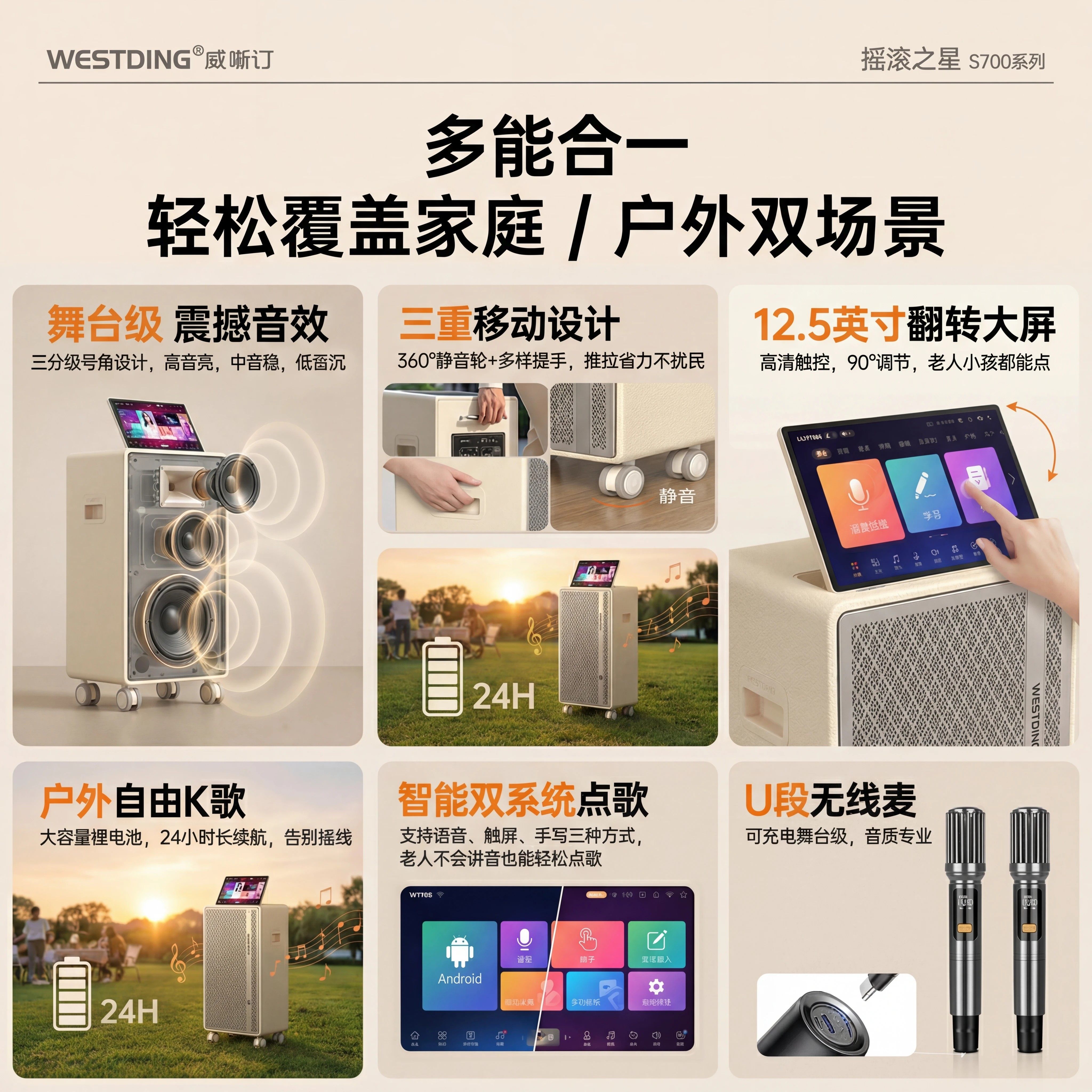 威斯汀S700广场舞音响家庭KTV音响套装户外K歌音箱卡拉OK一体机