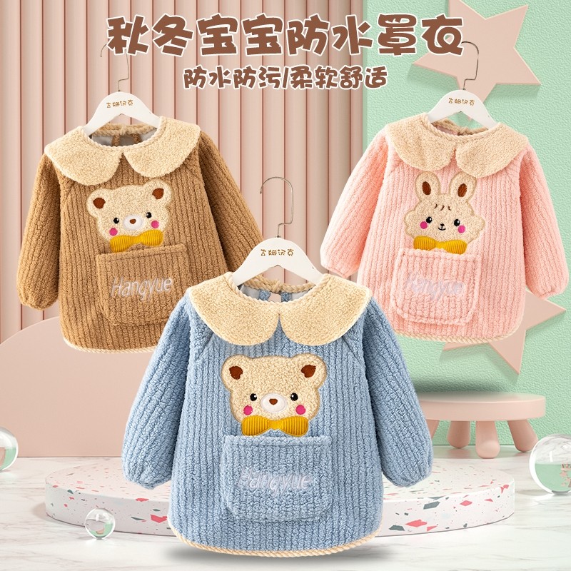 宝宝罩衣儿童秋冬季加绒加厚防脏保暖男女婴儿反穿衣护衣红色防水