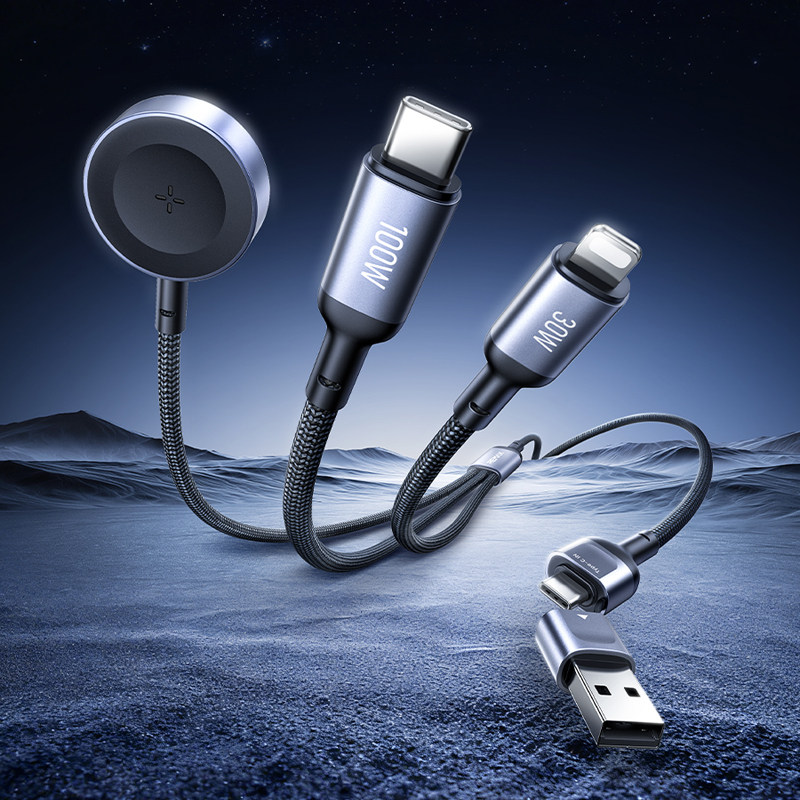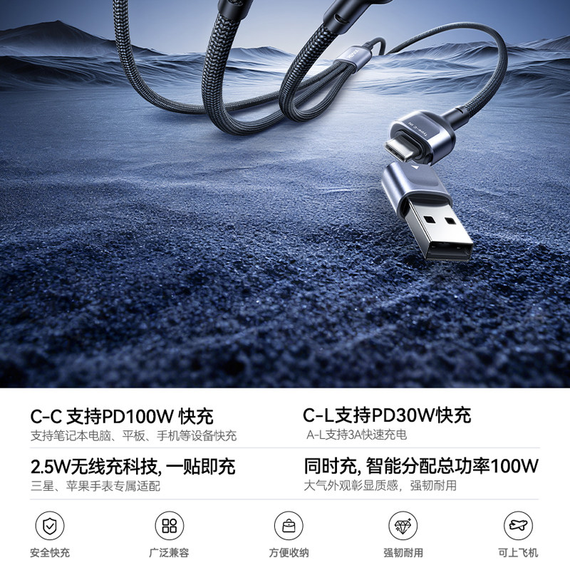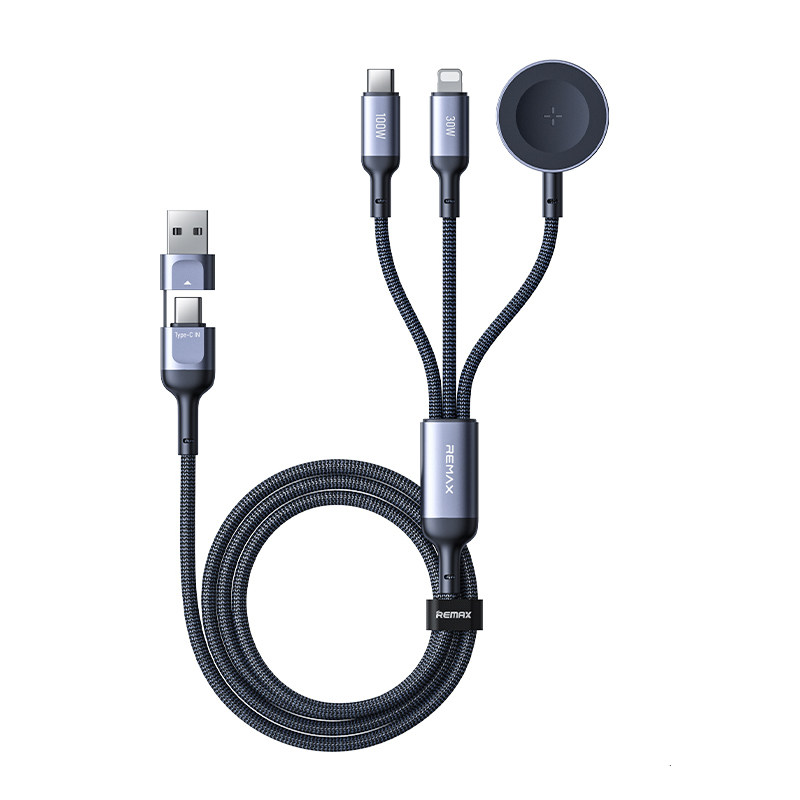 REMAX睿量一拖三快充数据线PD100W超级快充Type-C平板笔记本电脑适用三星苹果手表无线充华为通用手机充电线