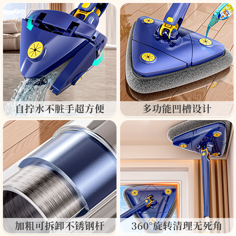 免手洗三角拖把天花板清洁神器家用2025新款自动拧水可伸缩擦吸水