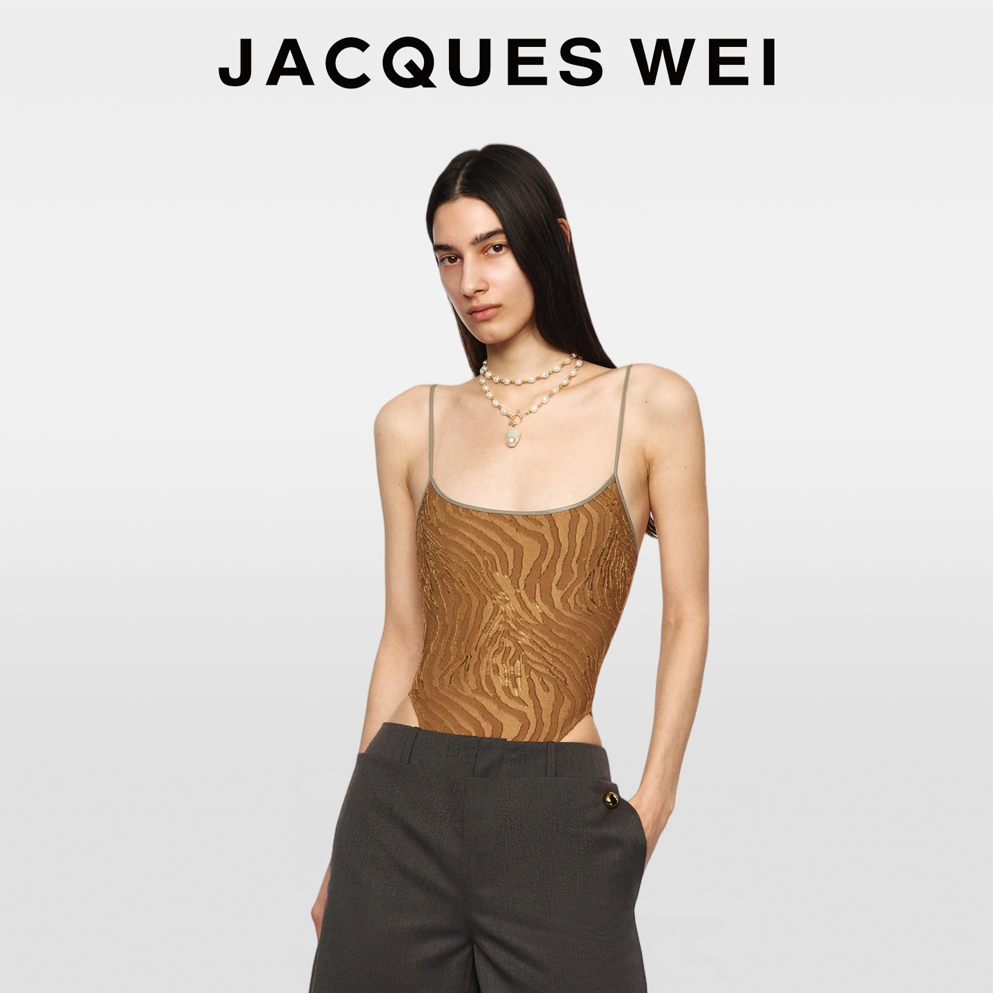 JACQUES WEI2026马年系列琥珀棕斑马纹背心吊带女连体衣圣诞穿搭