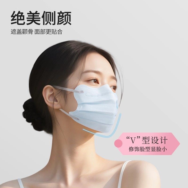一次性v脸口罩女高颜值蝴蝶莫兰迪护眼角口罩显脸小防护薄款透气