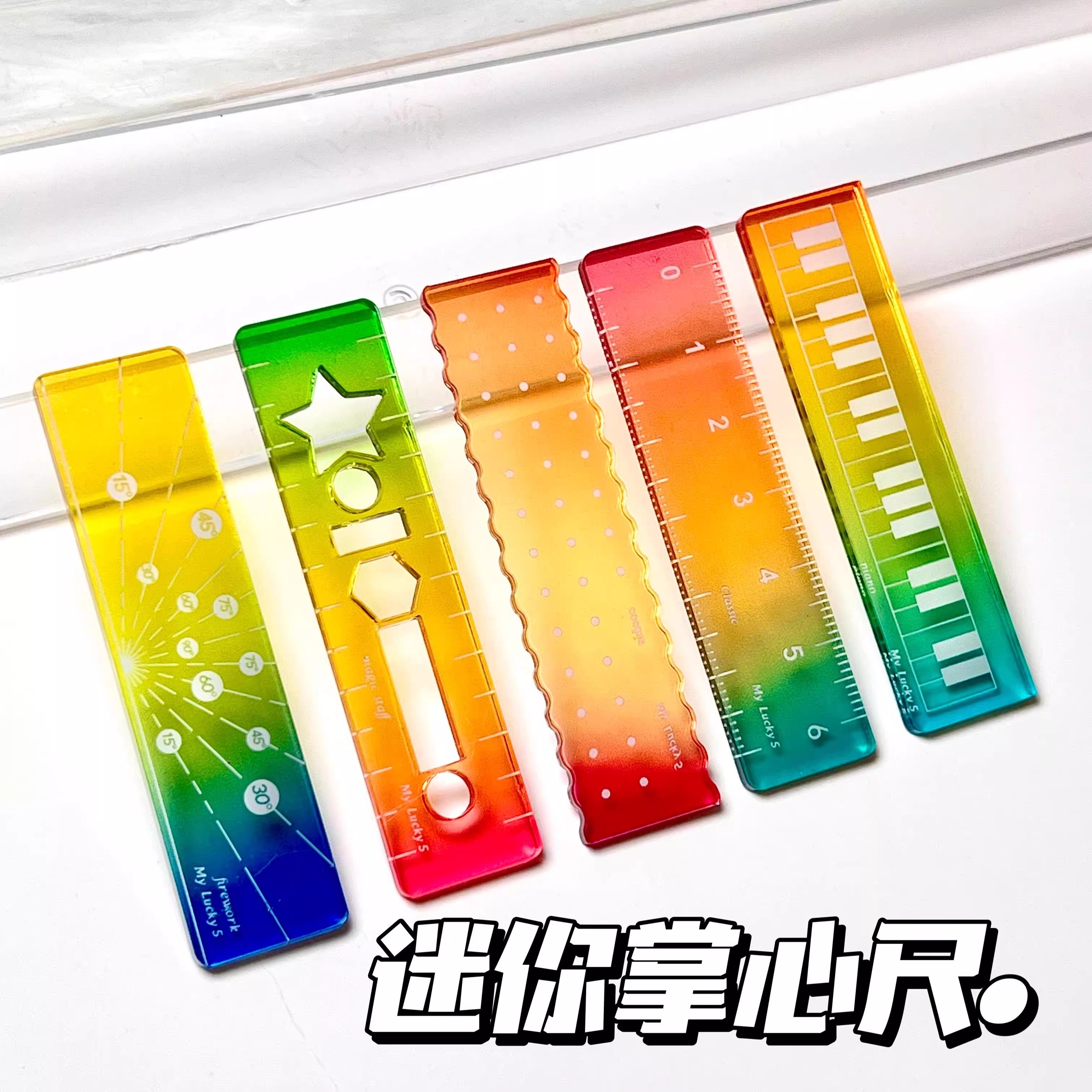 糖果彩色透明透光掌心直尺波浪测量绘画钢琴文具高颜值三角尺尺子